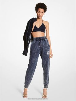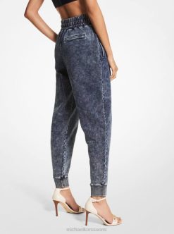 vaatetus Michael Kors ylimitoitettu happopesu puuvillafrotee lenkkeilyhousut indigo naiset Z682513