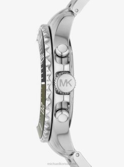 Lisätarvikkeet Michael Kors ylisuuri Brecken-logo ja hopeanvärinen kello laivasto miehet Z6823291