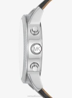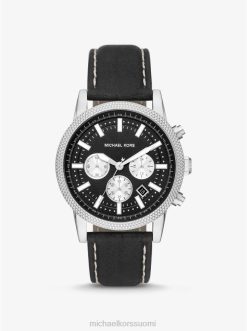 Lisätarvikkeet Michael Kors Ylisuuri hutton hopean sävyinen ja nahkainen kello musta miehet Z6823286