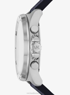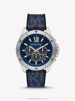 Lisätarvikkeet Michael Kors ylisuuri Brecken-logo ja hopeanvärinen kello laivasto miehet Z6823291
