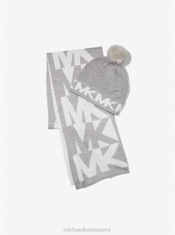 Lisätarvikkeet Michael Kors logo intarsia-neulottu pipo ja huivisetti helmen harmaa naiset Z6822733
