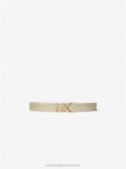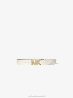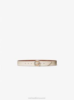 Lisätarvikkeet Michael Kors käännettävä logo ja nahkainen vyö kulta/vaalea kerma naiset Z6822691