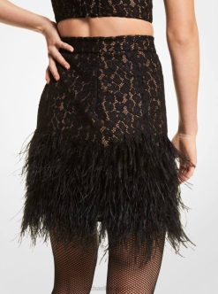vaatetus Michael Kors höyhenkoristeinen nyörillinen pitsihame musta naiset Z682618