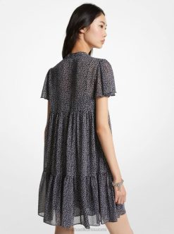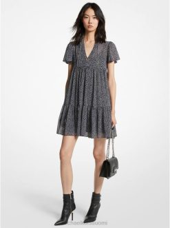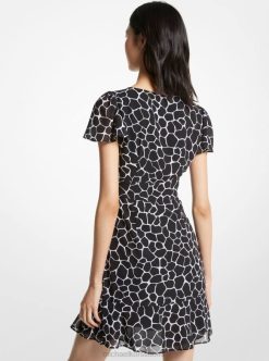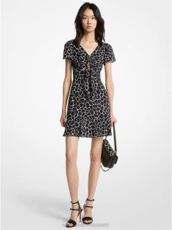vaatetus Michael Kors eläinkuvioinen georgette-leikkaus minimekko musta valkoinen naiset Z68288