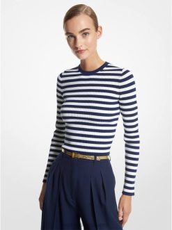 vaatetus Michael Kors malliston joustava viskoosi lyhythihainen pusero laivasto naiset Z6823566