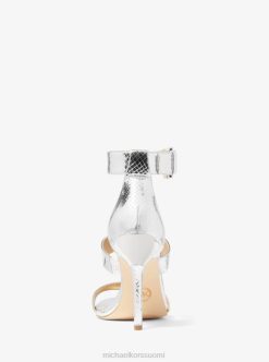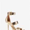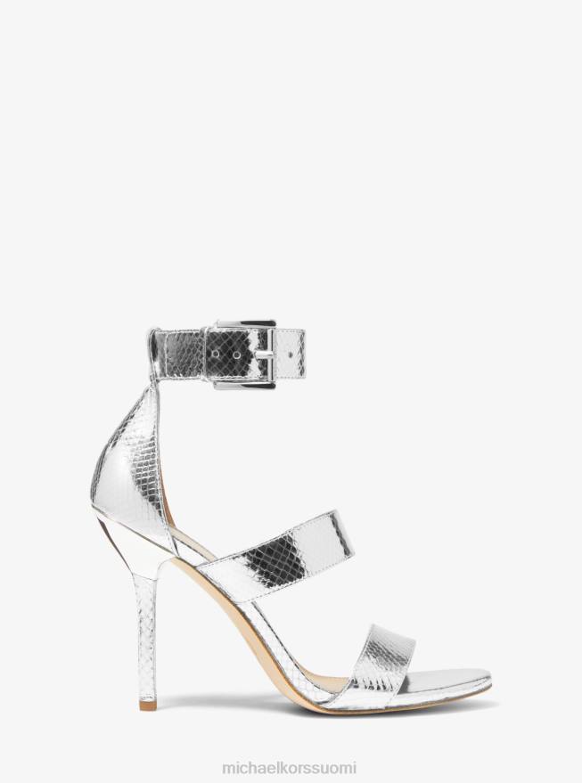 nahkaisissa amal-sandaaleissamme on metallinen käärmekuvioinen viimeistely, joka antaa monihihnaiselle muotoilulle eksoottisen reunan. kultainen tikkakorko ja soljettu olkahihna lisäävät sävyä. pidä omasi keskipisteenä jalkoja paljastavalla hameella tai mekolla.