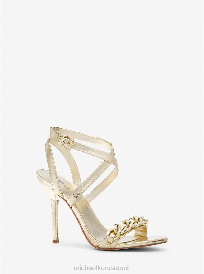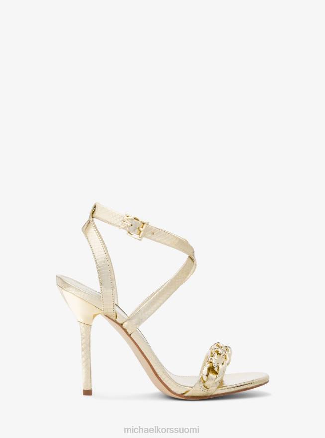 kenkiä Michael Kors asha koristeltu käärmekohokuvioitu nahkasandaali vaalea kulta naiset Z6821942
