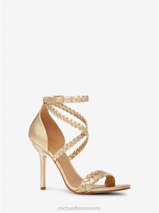 luota Astrid-sandaaliemme korostamaan ulkoasua. Tätä paria määrittelevät kiiltävä metallinen keinonahka ja punotut olkaimet, jotka kehystävät kauniisti jalkaa. vaikka tyylivaihtoehtoja on loputtomasti, mielestämme ne sopivat parhaiten erityistä iltaa varten.