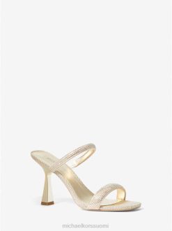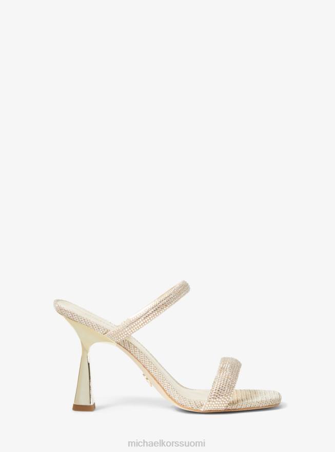 valoa vangitsevat kristallikoristeet tuovat kimaltelevaa tehoa clara-sandaaliemme. Tämän metallisen parin määrittelee kimalteleva ketjuverkkoviimeistely ja se on asetettu uurretun kantapään päälle lisäämään glamouria. käytä sitä iltaisin, kun haluat olla mukava ja lumoava.