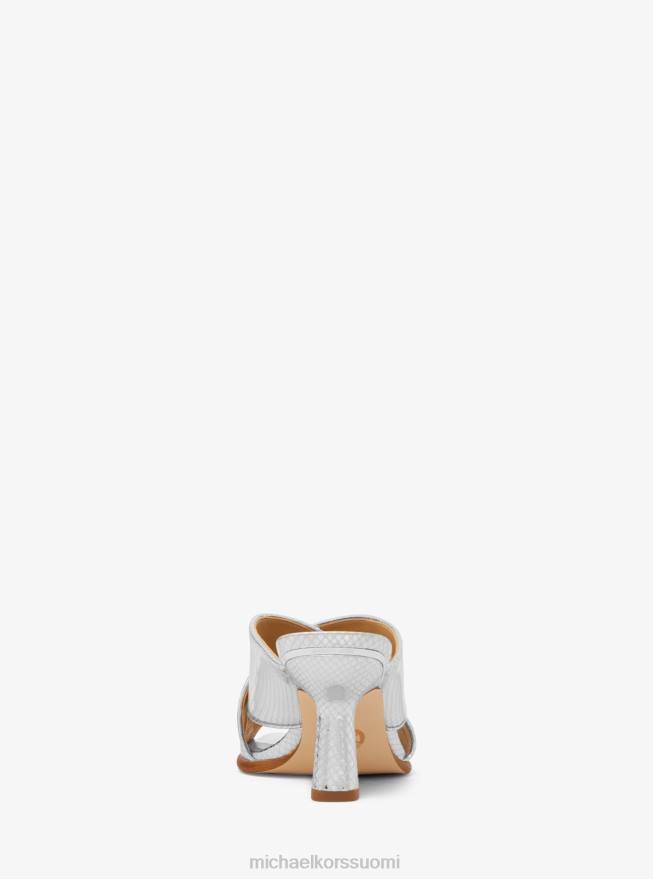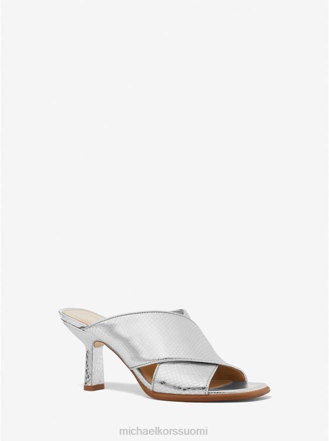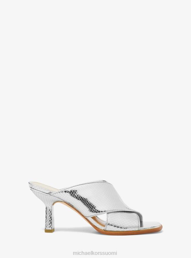 gideon-muulit ovat täydellisessä tasapainossa glamourin ja mukavuuden välillä. Tämä käärmekuvioitu nahkapari on asetettu tukevalle kitten kantapäälle, ja sitä määrittelevät leveät ristikkäiset olkaimet ja tyylikäs nelikulmainen varvas. korosta metallista viimeistelyä yhteensopivalla käsilaukulla.