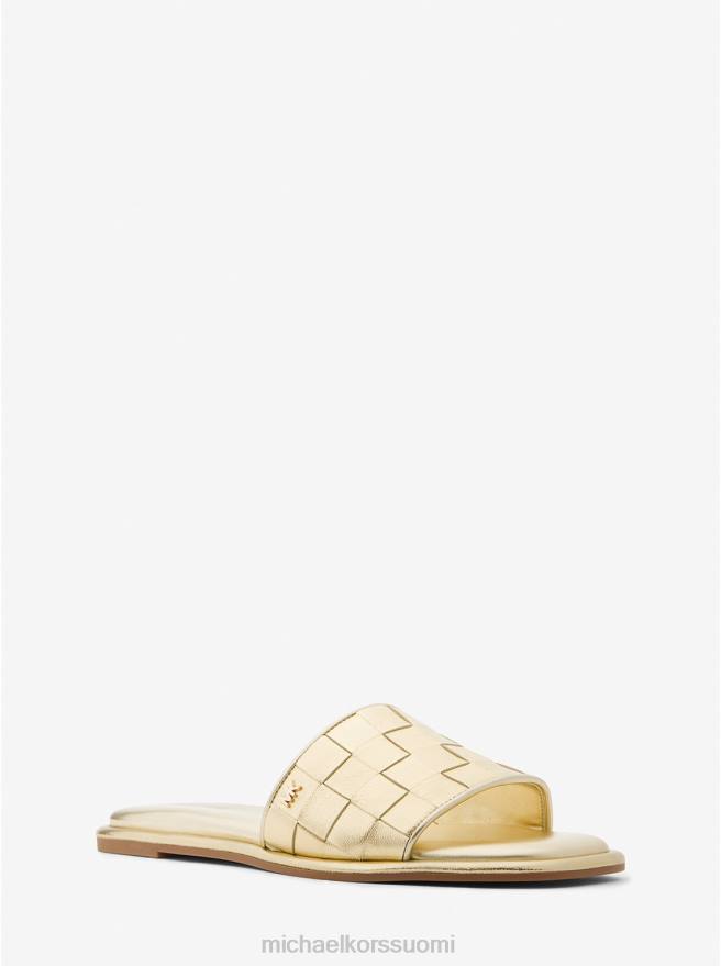 hayworth slide sandaalimme ovat vaivaton valinta lämpimiin päiviin. ne on valmistettu kudotuista metallisen nahan nauhoista teksturaalista viimeistelyä varten, ja niissä on pehmustetut pohjalliset koko päivän mukavuuden takaamiseksi. odotat pitäväsi omaasi koko kesän.