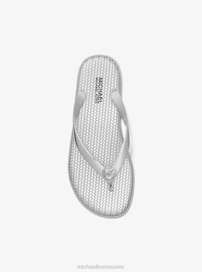 Tärkeintä pakoa varten, suihkusarjamme varvastossumme on tehty lumoaviin, off-the-grid -päiviin. Pehmustetun kumipohjan päällä koko päivän käyttöä varten tämä metallinen pari on suunniteltu kiillotetulla logolla, joka luo uutuuden tunnelmaa. pakkaa ne seuraavaa lämpimän sään lomaasi varten.