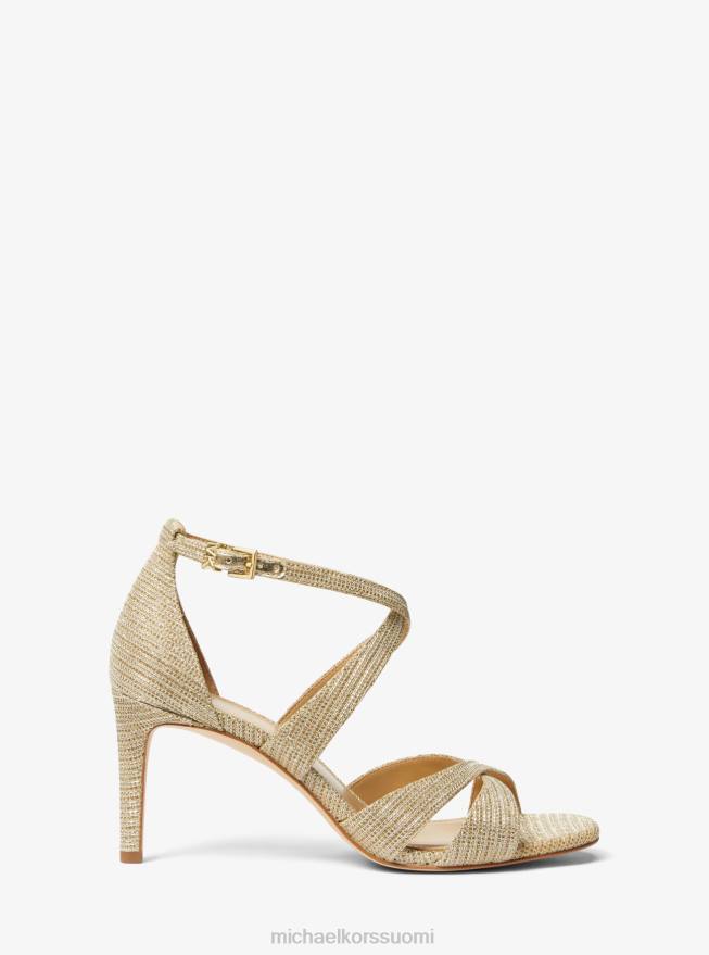 tutustu kinsley-sandaaliin: vastauksemme huomiota herättävään iltakenkiin. kimalteleva ketjuverkkorakenne antaa kiillotetun viimeistelyn mille tahansa lookille, kun taas hoikka kissanpentu takaa mukavuuden. täydennä tyylikästä solkikiinnitystä kullattujen korujen valikoimallamme.