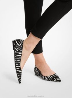 yhtä käytännöllinen ja tyylikäs, agnes flat -huoneistomme on valmistettu huolella Italiassa aidosta vasikankarvasta, ja siinä on silmiinpistävä seeprakuvio. jalkoja imarteleva terävä kärki ja kevyt kantapää tarjoavat kiillotetun viimeistelyn, kun taas kevyesti pehmustetut pohjalliset takaavat mukavuuden koko päiväksi. pujaa ne päälle minkä tahansa kokoonpanon kanssa.