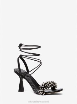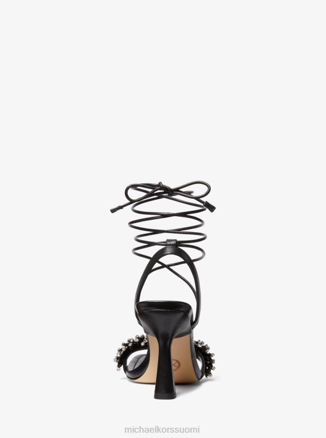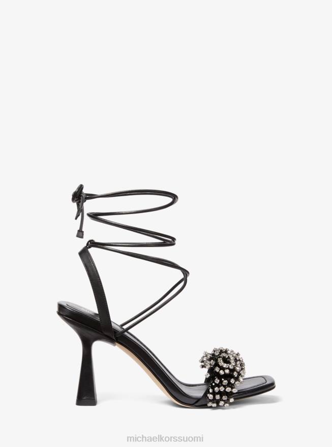 tehosta iltakenkäpeliäsi lucia-sandaalilla. Näissä aidosta nahasta valmistetuissa rannekkisandaaleissa on yksilöllisesti muotoiltu kantapää ja varvashihnassa on päätä kääntävät kristallikoristus. sido ne seuraavaa treffiiltaa tai iltaa varten.