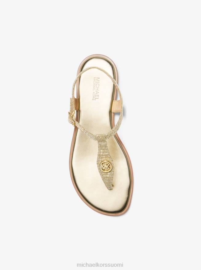 mallory-sandaali tuo hillittyä tyylikkyyttä mihin tahansa lämpimän sään ilmeeseen. Tämä t-hihnan siluetti on valmistettu valoa vangitsevasta ketjuverkosta ylellisen lopputuloksen saavuttamiseksi, ja se on saumaton valinta sekä valkoisiin farkkuihin että lenkkeviin maximekkoihin. hurmaava aksentti antaa lisäkiillotusta.
