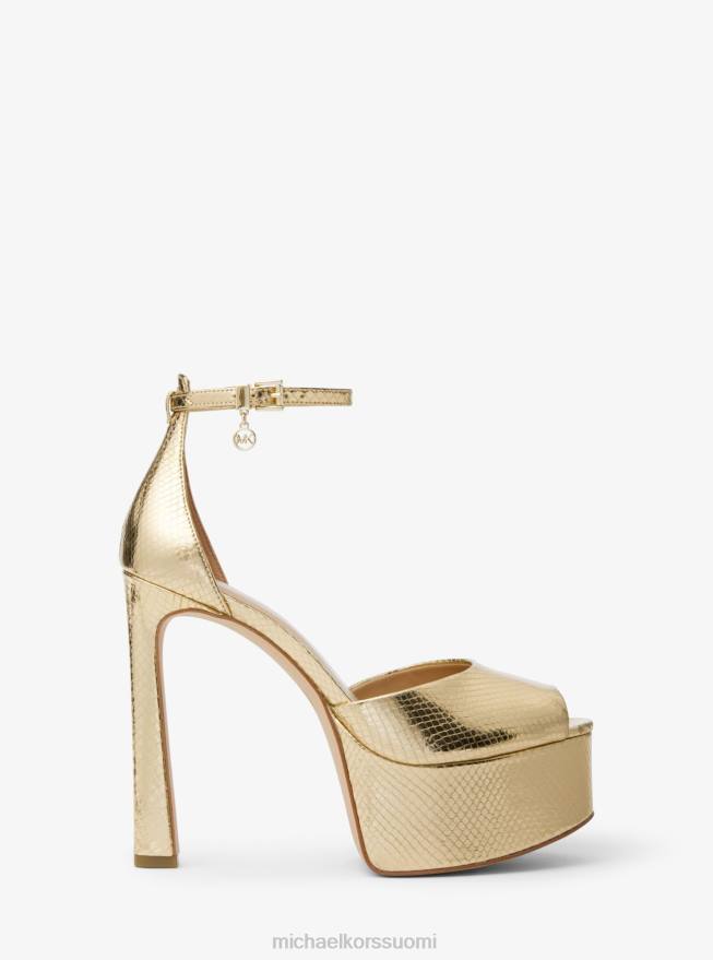 kenkiä Michael Kors martina metallinen käärme kohokuvioitu nahka peep-toe alustapumppu vaalea kulta naiset Z6822280