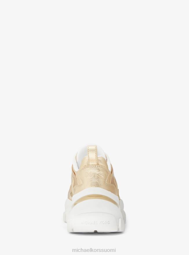 ja metallisen viimeistelyn määrittelevät nahkaiset nick-tennarit ovat tyylikäs tapa täydentää ilmettäsi. Tämä urheilullinen pari on asetettu arkkitehtonisille muotoilluille kumipohjille, jotta pysyt mukavana jaloissasi koko päivän. yhdistä heidät verryttelyhousuihin tai farkkuihin vapaapäivinä.