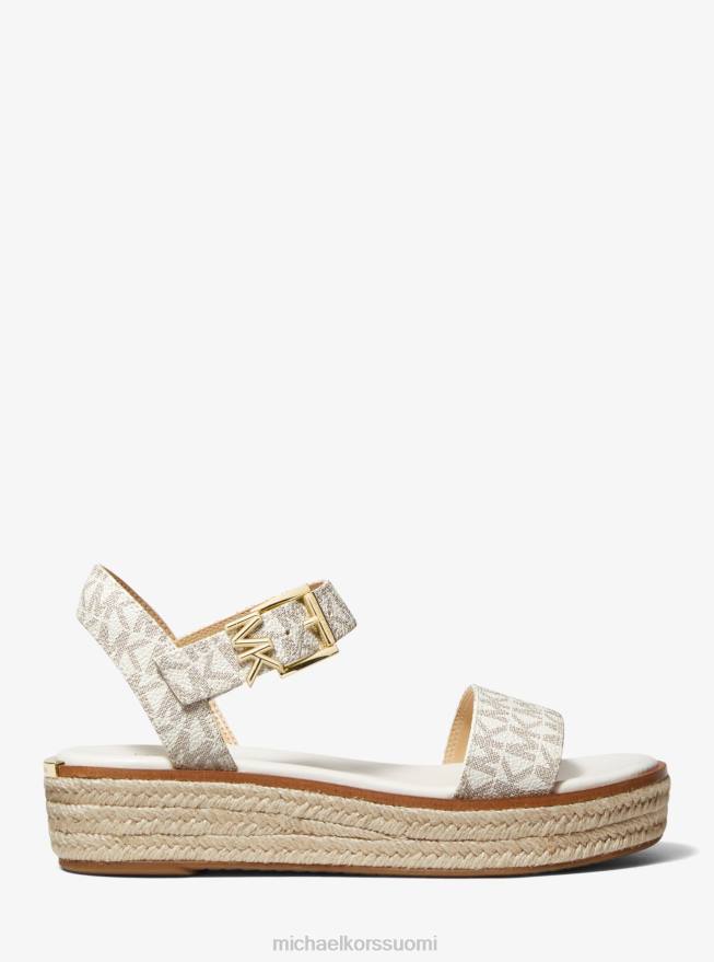 tue kesään täydellisellä kengällä joka tilanteeseen. Ikonisilla “mk”-nimikirjaimillamme kiillotettu richie-sandaali on valmistettu tunnuskuviokankaasta ja asetettu kudotun juuttialustan päälle boheemin kierteen saavuttamiseksi. rakastamme kuinka nilkkahihna ja paksu pohja luovat illuusion pidemmistä jaloista.
