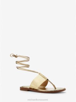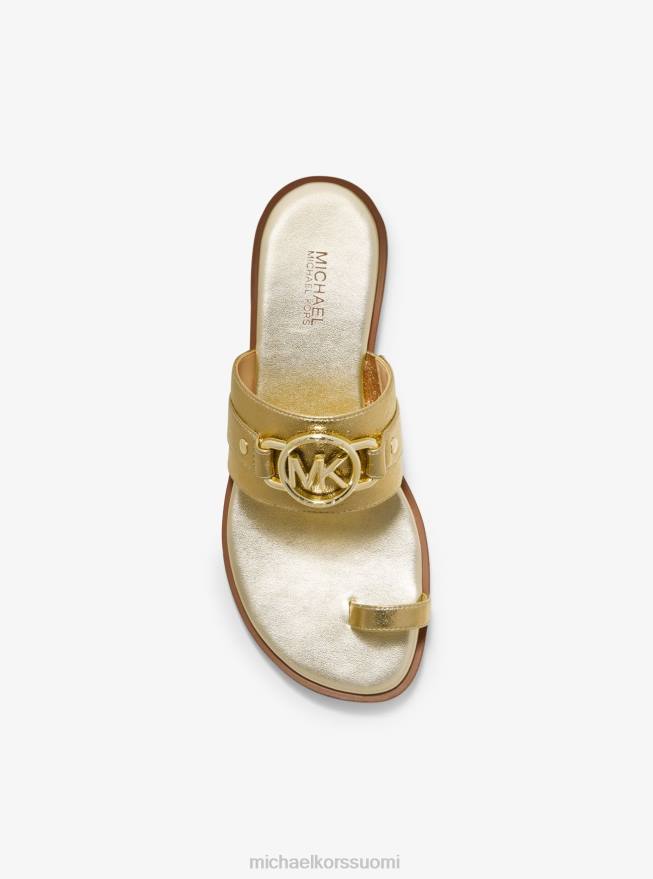 minimalistiset rory-sandaalimme ovat pari, jota ilman et koskaan sulje matkalaukkusi vetoketjua. Ne on valmistettu metallinahasta, ja niiden päällä on kiillotettu logolaatta, joka tekee niistä riittävän tyylikkäitä päivä- tai yökäyttöön. varvaslenkki pitää ne tukevasti paikoillaan.