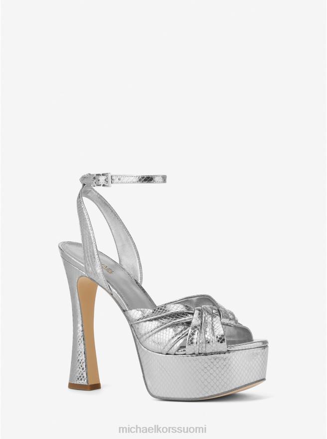 selena-sandaalimme vahvistaa taatusti työajan jälkeistä ilmettäsi. Tässä silmiinpistävässä parissa on metallinen käärmekuvioitu nahka, solmitut olkaimet ja veistoksellinen kantapää, jota tasapainottaa suuri alusta. käytä sitä välittömän jalkoja pidentävän vaikutuksen saamiseksi.