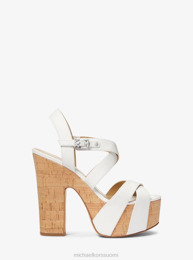 korkkitasolle sijoitetut suki-sandaalit nostavat minkä tahansa ilmeen ylellisiin, uusiin korkeuksiin. Tässä nahkaparissa on ristikkäiset olkaimet, jotka pidentävät jalkoja, ja tyylikäs tuotemerkki. muotoile ne farkkujen ja flirttailevien helman kanssa.