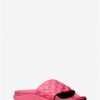 kenkiä Michael Kors terävä metallinen logo kohokuvioitu keinonahkasandaali vaalea kulta naiset Z6821955