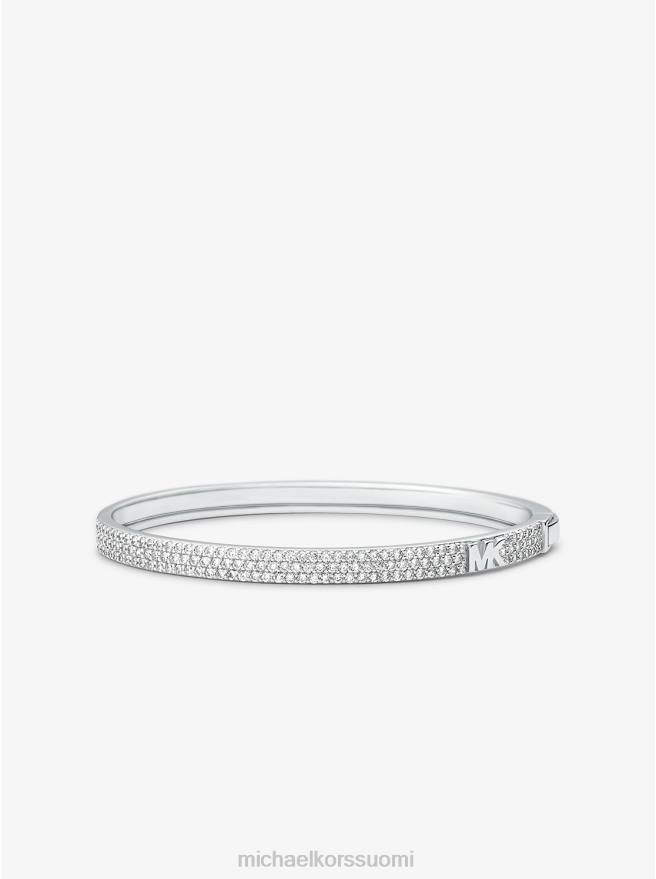 tämä rannerengas on kaiken kiiltävän määritelmä. Valettu sterlinghopeaan ja saatavana kolmessa erittäin ylellisessä pinnoituksessa, se on suunniteltu merkin halutuilla nimikirjaimilla, joita suojaa kimalteleva kivetysmeri. käytä sitä yksinään tai päällekkäin täydentävien rannekorujen kanssa.