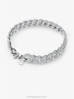 kimaltelevat päällystyskorut lisäävät naisellista viehätystä tähän rannekoruun. Se on valmistettu sterlinghopeasta ja saatavana kahdella kiiltävällä pinnoitteella, ja siinä on logomme alkuperäinen viehätysvoima, joka antaa tunnusomaisen kosketuksen. käytä sitä yksinään tai päällekkäin yhtä silmiinpistävien lisäosien kanssa.