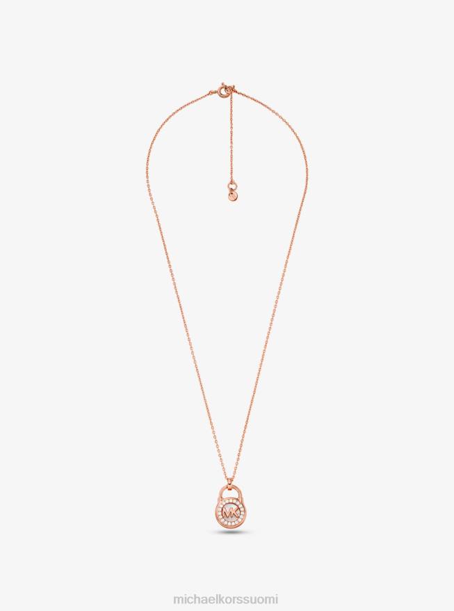 saatavana kolmella korotetulla pinnoituksella, tämä kaulakoru on valmistettu sterlinghopeasta, ja siinä on riippulukkoriipus, jossa on logomme nimikirjaimet ja jota ympäröi päällystyskoriste. Ihanteellinen lahjaksi, se on pujotettu herkästä ketjusta, jota voidaan pidentää lisäämällä pidennysainetta. käytä sitä yksin tai kerrostele sitä täydentävien tyylien kanssa.