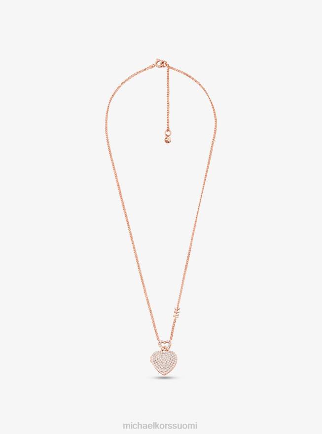 saa inspiraationsa ainutlaatuisista perinteisistä koruista. Tämä jalometallipäällysteinen kaulakoru on ankkuroitu medaljongilla. herkkää ketjua korostetaan entisestään päällystetyllä sydämellä ja ”mk”-nimikirjaimellamme, mikä lisää sen viehätystä. kerrostele sitä muiden mallistomme tyylien kanssa.