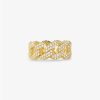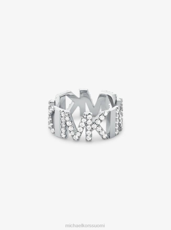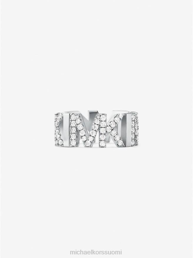 valmistettu platinapinnoitetusta messingistä, ja tämä erottuva sormus on koristeltu kimaltelevilla kivijalkakivillä, jotka korostavat nauhan “mk”-leikkauksia. käytä sitä yksinään tai pinoa sitä tavallisen kullan nauhojen kanssa.