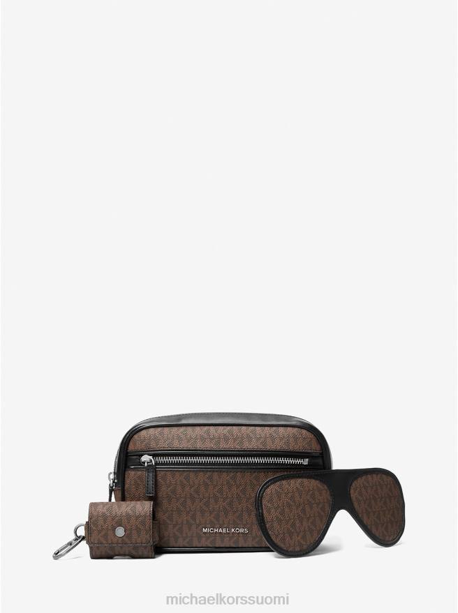 tämä matkasetti on täydellinen lahja elämäsi kanta-asiakkaalle. 3-in-1-mallissa on omaleimaisesta printtikankaasta valmistettu vetoketjullinen pussi kylpytuotteille, klipsikotelo apple-ilmapodille ja silmänaamari, joka estää valon. sujauta se sopivaan viikonloppulaukkuun ja paljon muuta.