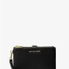 allekirjoitusprinttikankaasta, ja siinä on kaksi vetoketjullista sivua, jotka avautuvat paljastaen keskuksen, jossa on taskut kaikelle olennaiselle – luottokorteista älypuhelimeen. irrotettava rannehihna tekee siitä riittävän monipuolisen kantaakseen yksin tai laukkussa.