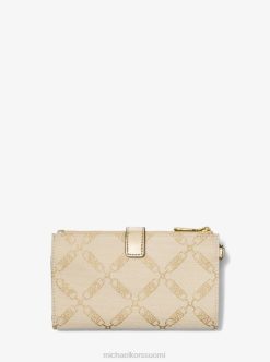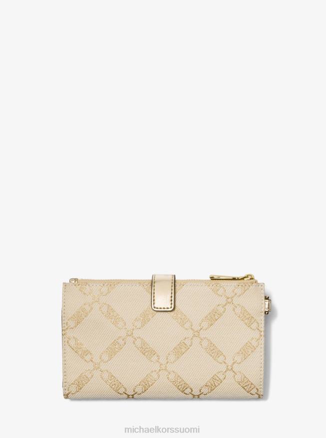 joka määrittelee ikonisen imperiumimme laitteistomme. Tässä metallilompakossa on kaksi vetoketjullista puolta, jotka avautuvat paljastaen keskuksen, jossa on taskut kaikelle olennaiselle – luottokorteista älypuhelimeen. . irrotettava rannehihna tekee siitä riittävän monipuolisen kantaakseen yksin tai laukkussa.
