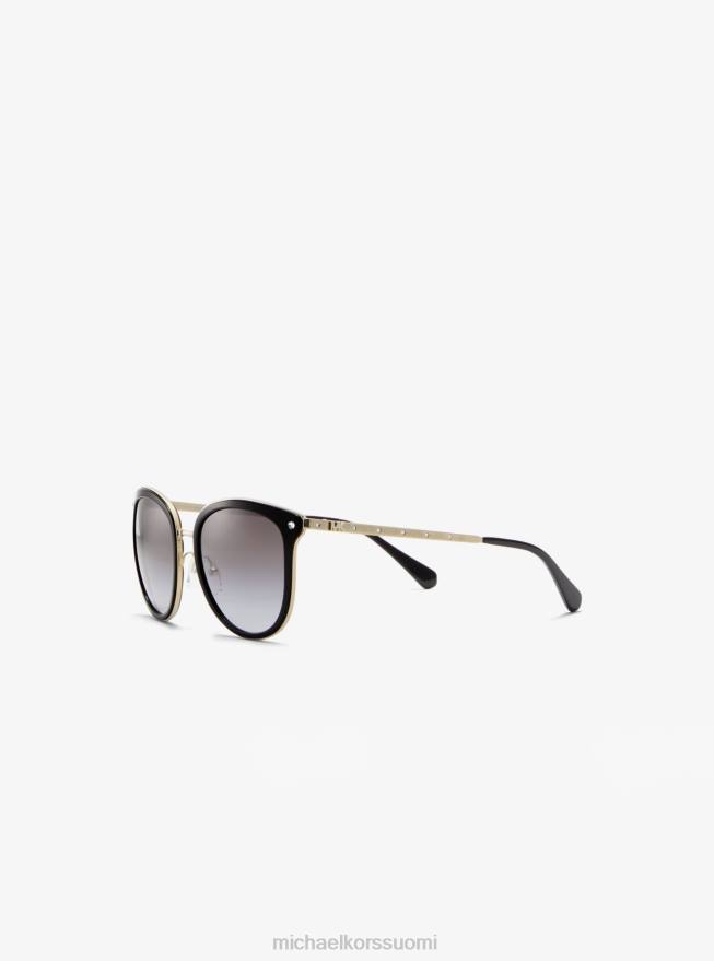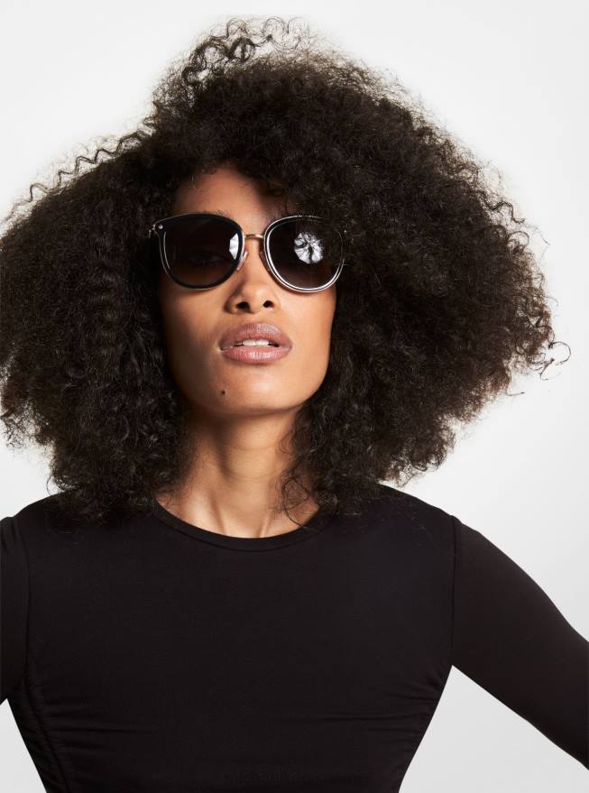 lisää ripaus glamouria päivääsi adrianna-aurinkolaseillamme. Tässä kaltevuuslinsseillä varustetut parit sisältävät “mk”-kirjaimet ja häikäisevät päällystyskorostukset ylellisen viimeistelyn takaamiseksi. kevyet ja monipuoliset, ne ovat täydellinen lisävaruste vaeltamaan kaupungin kaduilla tai päivällä rannalla.