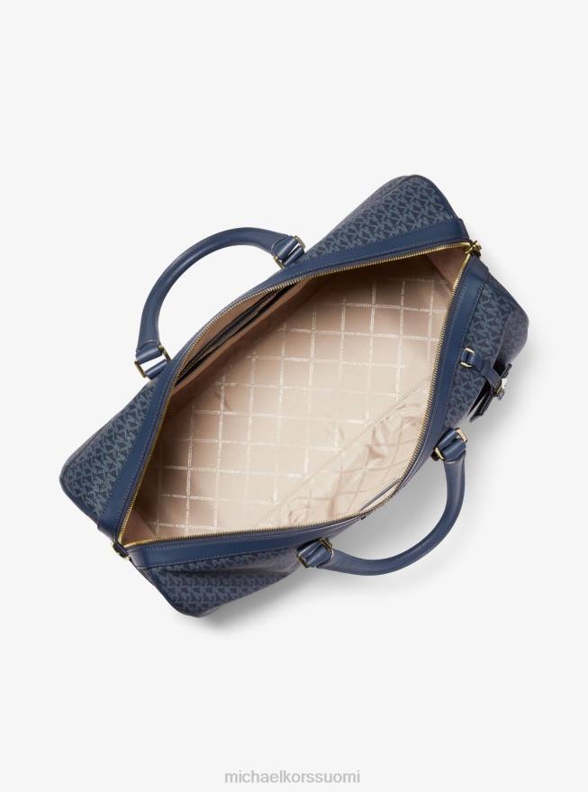 tee tyylikäs pakomatka bedfordin viikonloppumatkalaukullamme. pitkille lennoille ja junamatkoille suunniteltu duffel-muotoinen kantolaukku on muotoiltu meidän logopainatuksellamme, ja siinä on korostettu keskiraidat ja soljettu nahkaverhoilu. sisätaskuissa pienemmät tavarat, kuten kuulokkeet ja lompakko ovat saatavilla, kun taas irrotettava olkahihna helpottaa kantamista.
