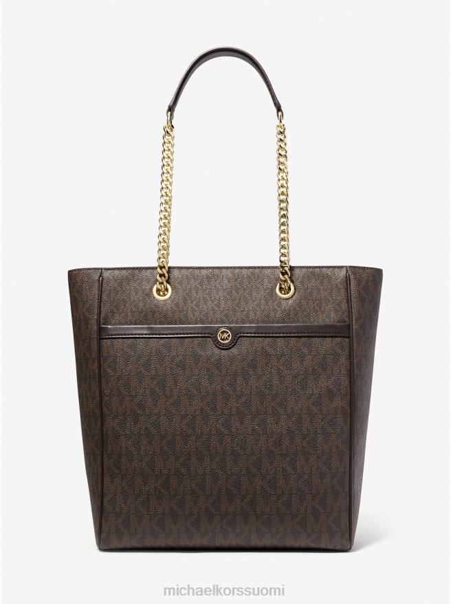 tapaa blaire: tilava kantolaukku, joka sopii kaikkiin tekniikkaasi ja päivittäiseen tarpeisiisi tulevaa päivää varten. Se on muotoiltu tunnuskuviokankaasta, ja siinä on ketjulinkki yläkahva ja ulkotasku puhelimellesi tai muille pienille esineille. yhtä lumoava ja käytännöllinen, se sopii melkein minkä tahansa asun kanssa.