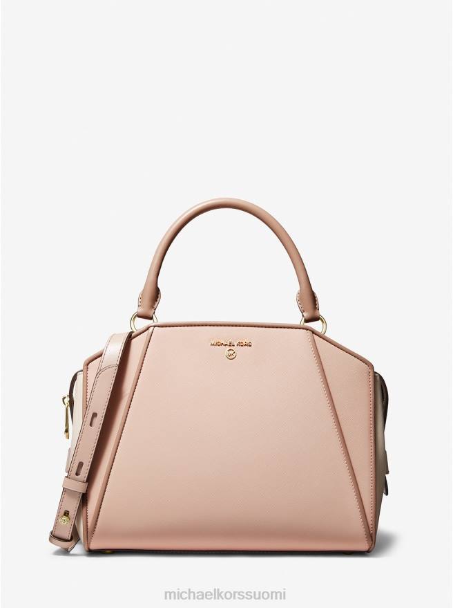 värilohkoviimeistely lisää taiteellista viehätystä saffiano-nahkaiseen cleo-laukkuun. Säädettävällä crossbody-hihnalla varustettuna tämä tilava kantolaukku liukuu helposti olkapääsi yli tien päällä. pidä se fokusoituna neutraaleilla erottimilla.