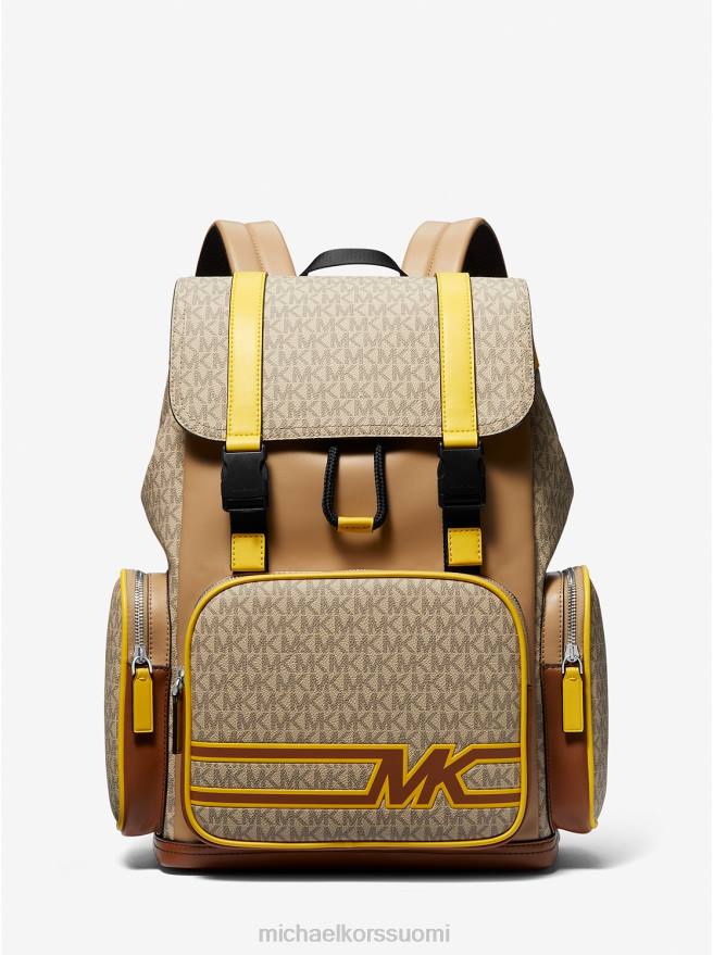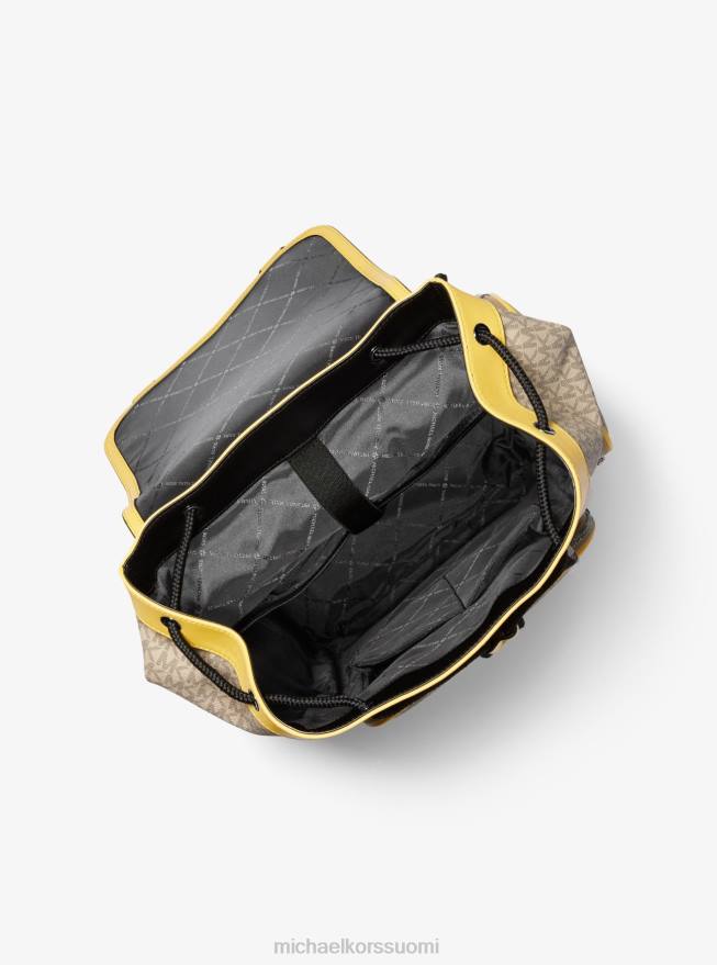tyylikkäällä allekirjoitusprinttikankaalla, jonka etutaskussa on tyylitelty “mk”-kirjain, jossa on valikoima sisä- ja ulkotaskuja helpon pääsyn takaamiseksi. ja organisaatio. soljellinen läppä avautuu tilavaan sisätilaan, jossa on kiristysnyöri ja sisällä taskut, joten voit pitää kaiken turvassa.