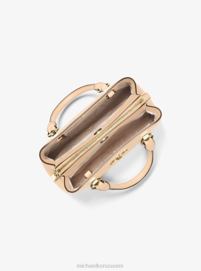 saffiano-nahka ja kiiltävä laitteisto tuovat edithille välitöntä hienostuneisuutta. Tämä pehmeästi muotoiltu laukku, jossa on keskimääräinen vetoketjutasku, on mitoitettu sisältämään vain välttämättömät asiat. käytä sitä päästä varpaisiin neutraalien kanssa tällä kaudella.