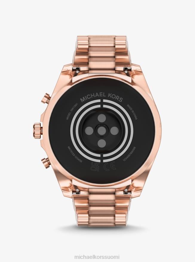 gen 6 bradshaw -älykellomme on täydellinen yhdistelmä aivoja ja kauneutta. Ruusukultaisesta ruostumattomasta teräksestä valmistettu huippumoderni kello on varustettu lukuisilla hyvinvointiominaisuuksilla, kuten sykemittarilla, spo2-sensorilla, joka seuraa hengitystäsi, ja uniarvoja, jotka parantavat torkkua. Tämä laite pystyy lataamaan kaksi kertaa nopeammin kuin muut johtavat älykellotyypit, joten tämä laite tukee sinua kaikissa vaiheissa.