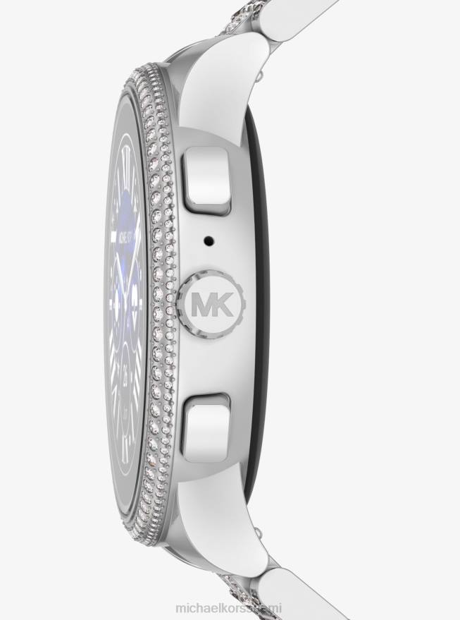 sukupolven 6 camille -älykellossamme on yhtä paljon huippumuotia ja huipputeknologiaa. Tämä huippuluokan kello on suunniteltu hopeanvärisestä ruostumattomasta teräksestä päällystyskoristeilla, ja se on varustettu lukuisilla hyvinvointiominaisuuksilla, kuten sykemittarilla, spo2-sensorilla, joka seuraa hengitystäsi, ja uniarvoja parantaaksesi torkkua. Tämä laite pystyy lataamaan nopeammin kuin muut johtavat mallit, joten se tukee sinua kaikissa vaiheissa.