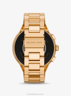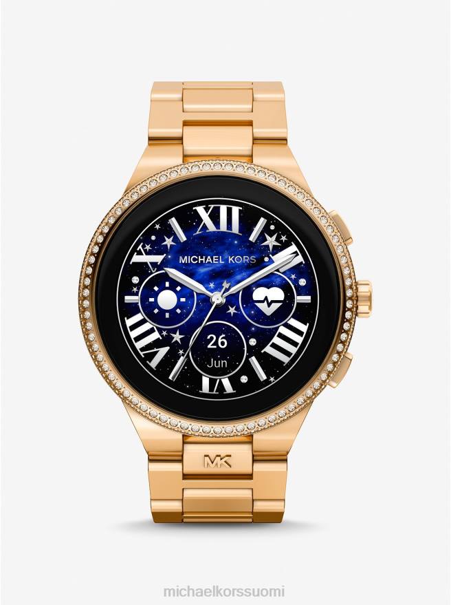 sukupolven 6 camille -älykellossamme on yhtä paljon huippumuotia ja huipputeknologiaa. Tämä huippuluokan kello on suunniteltu kullanvärisestä ruostumattomasta teräksestä päällystyskorosteilla, ja se on varustettu lukuisilla hyvinvointiominaisuuksilla, kuten sykemittarilla, spo2-sensorilla, joka seuraa hengitystäsi, ja uniarvoja, jotka parantavat torkkua. Tämä laite pystyy lataamaan nopeammin kuin muut johtavat mallit, joten se tukee sinua kaikissa vaiheissa.