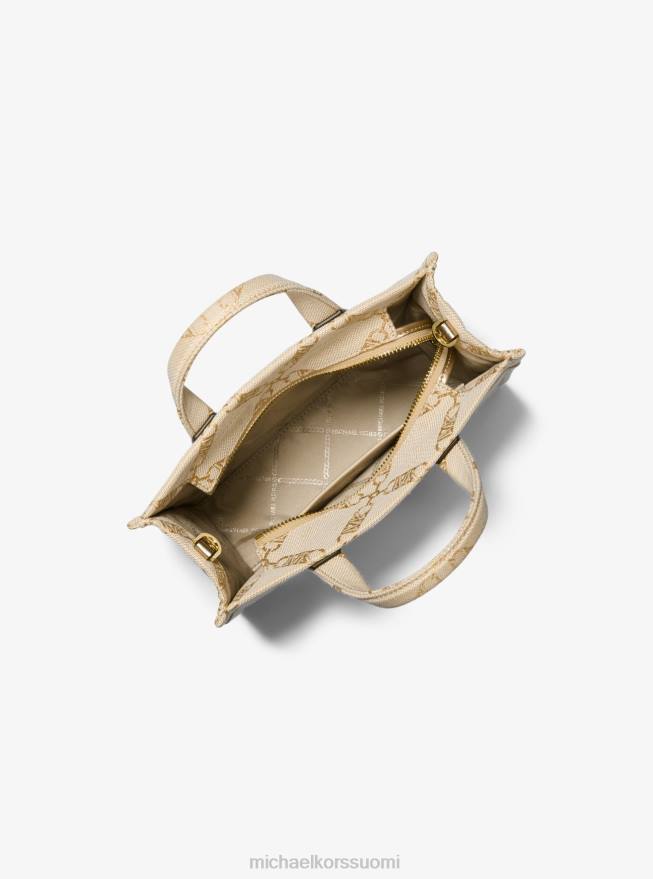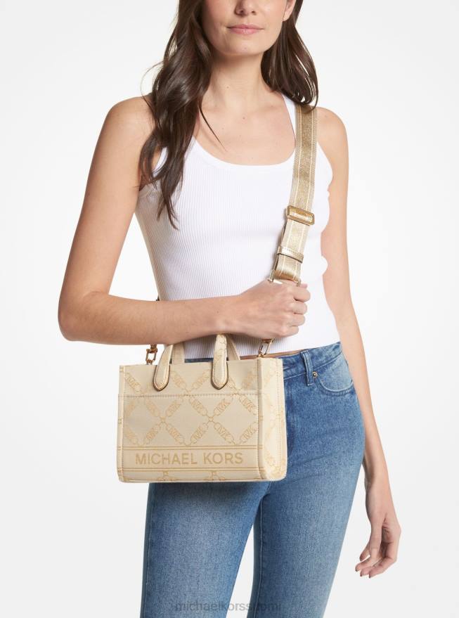 Lisätarvikkeet Michael Kors gigi pieni metallinen empire logo jacquard messenger laukku vaalea kulta/luonnollinen naiset Z682853