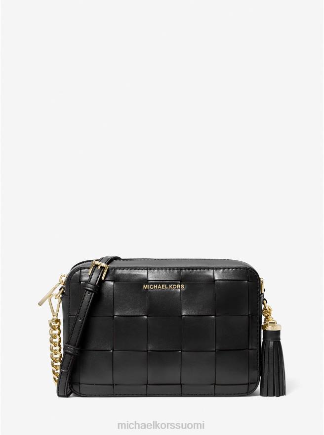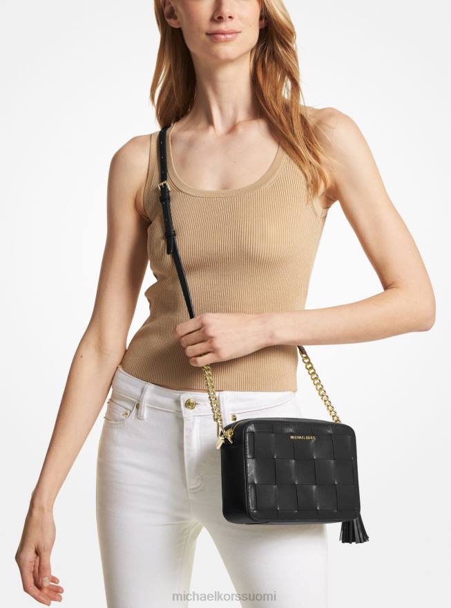 Lisätarvikkeet Michael Kors ginny medium kudottu nahkainen crossbody laukku musta naiset Z682644