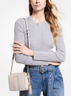 Lisätarvikkeet Michael Kors ginny medium logoraitainen crossbody laukku vanilja/pehmeä pinkki naiset Z682752