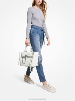 pragmaattinen mutta näyttävä lisävaruste. Hamiltonin perintölaukkumme on välitön ikoni. Se on valmistettu ylellisestä nahasta, ja siinä on säädettävät sivukulmat ja kiillotettu ketjuriipus koristeelliseksi. sen lokeroituun sisätilaan mahtuu helposti kannettava tietokone ja päivän tarpeet.