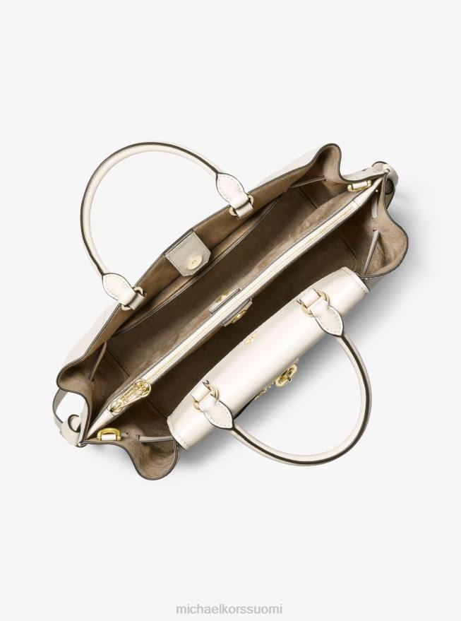 pragmaattinen mutta näyttävä lisävaruste. Hamiltonin perintölaukkumme on välitön ikoni. Se on valmistettu ylellisestä nahasta, ja siinä on säädettävät sivukulmat ja kiillotettu ketjuriipus koristeelliseksi. sen lokeroituun sisätilaan mahtuu helposti kannettava tietokone ja päivän tarpeet.