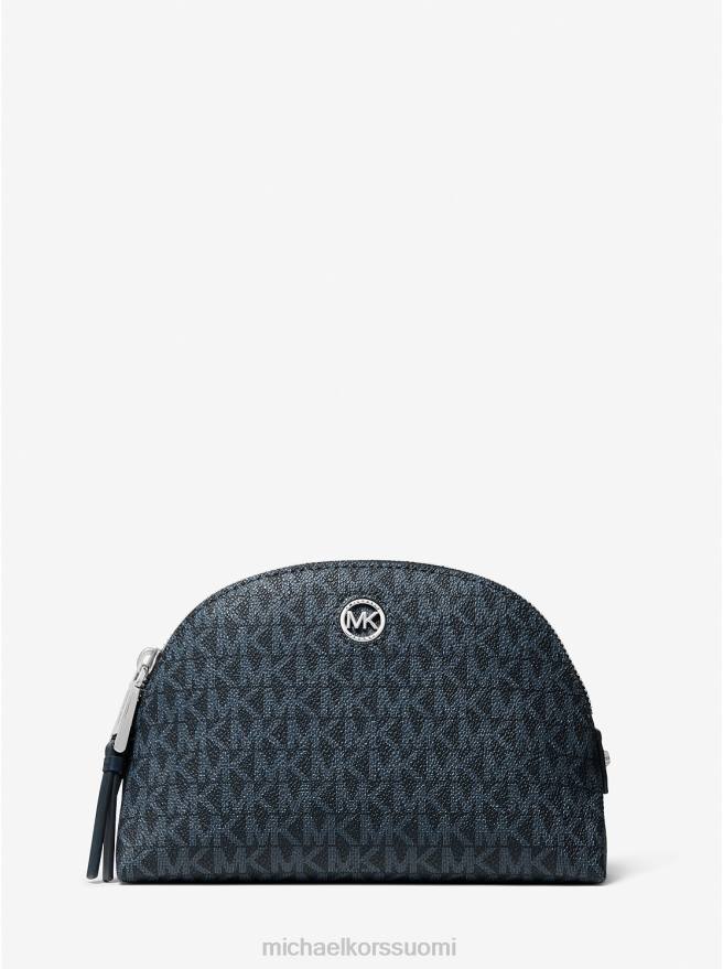 tämä pussi helpottaa järjestämistä kotona tai tien päällä. Se on valmistettu ainutlaatuisesta printtikankaasta, ja se avautuu ja paljastaa vuoratun sisustuksen, jossa on runsaasti tilaa meikille, ihonhoidolle ja muille välttämättömille tarvikkeille. pidä se kätkettynä laukkuasi tai lähellä alaosaa.